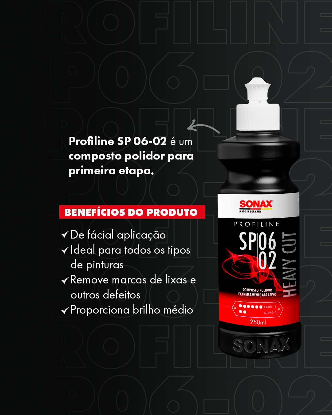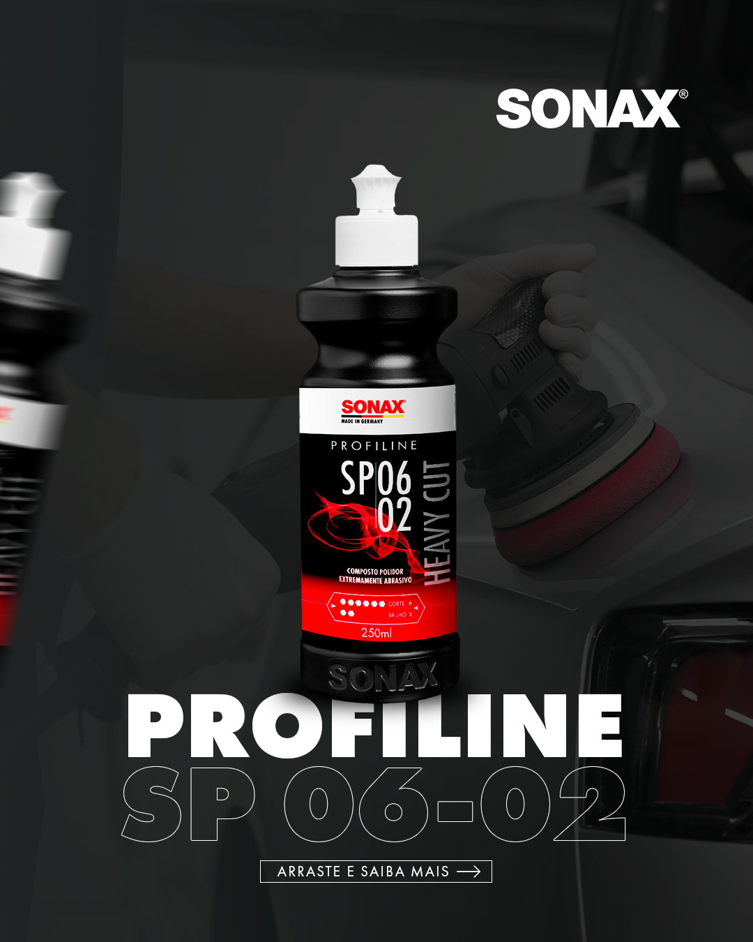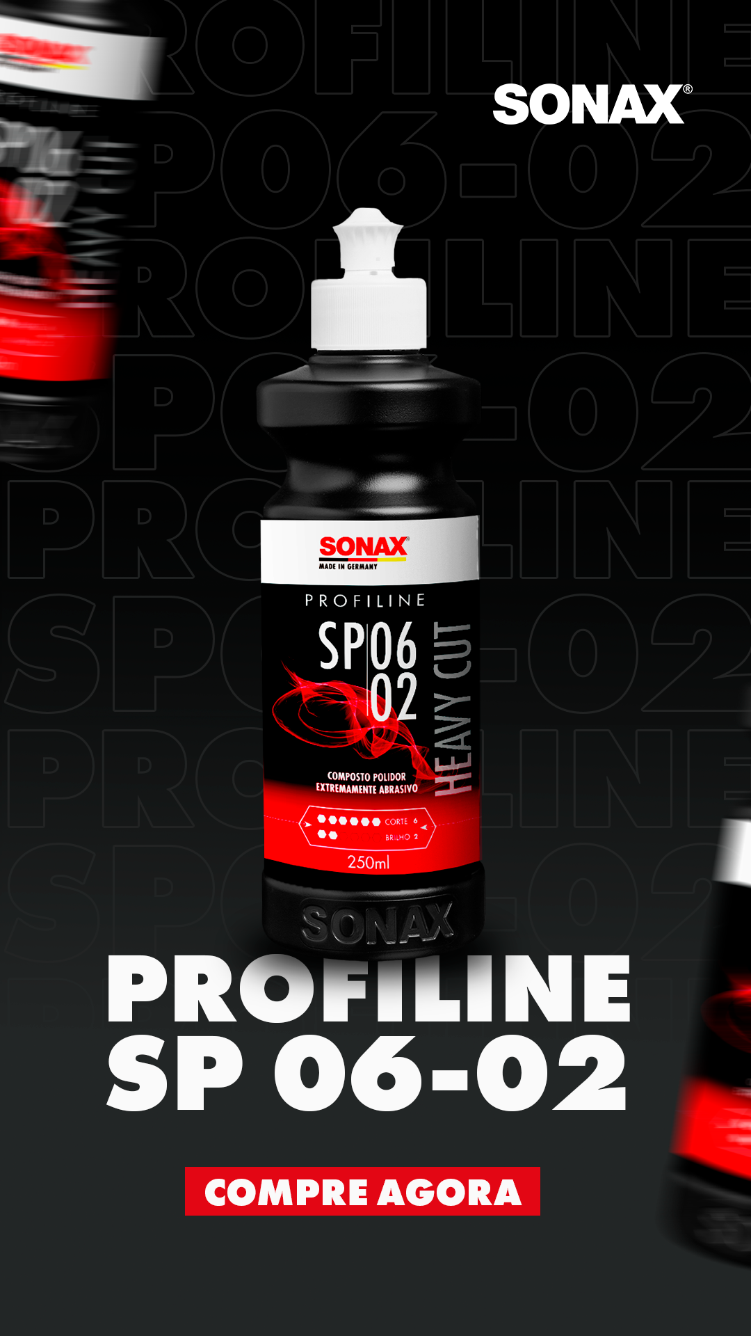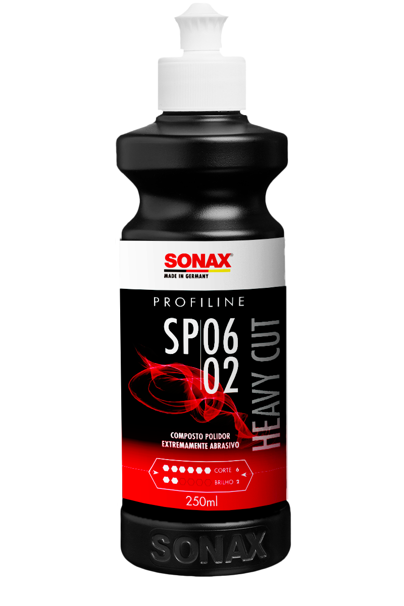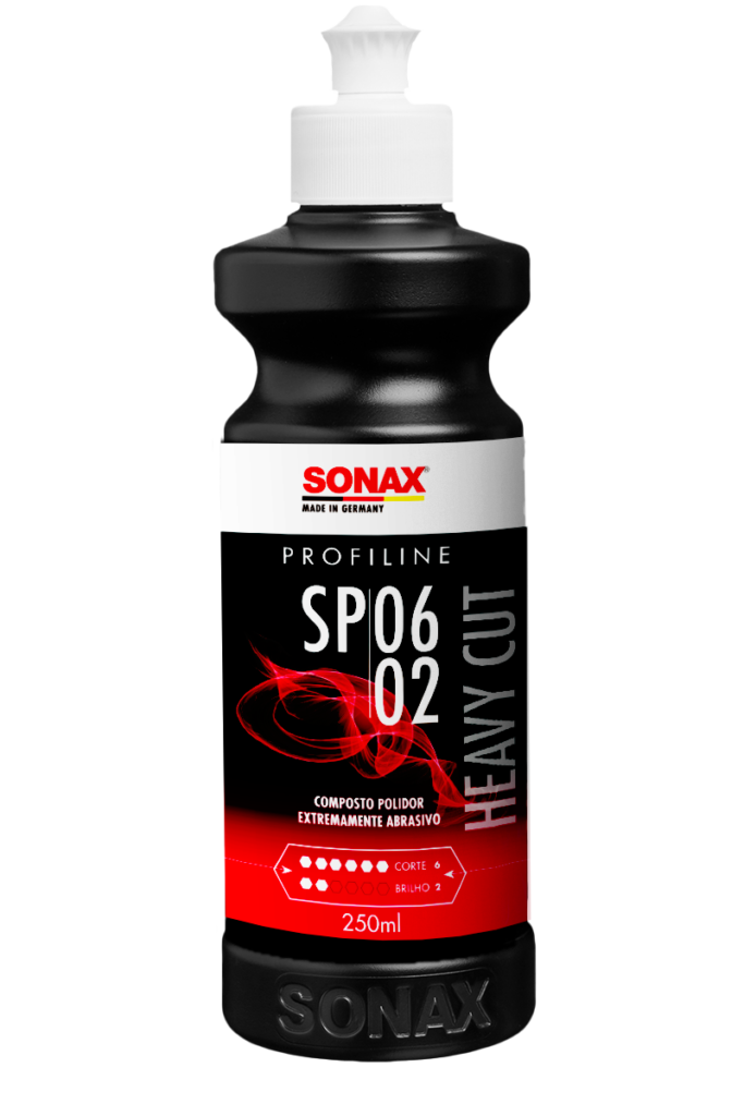 O Heavy Cut SP 02-06 da SONAX é uma pasta abrasiva sem silicone, com alto teor abrasivo, ideal para lixar camadas de tinta desgastadas e arranhadas. Ela remove corrosão causada por excrementos de pássaros, insetos e seiva de árvores, sendo adequada para todos os tipos e cores de tinta. Além disso, elimina inclusões de poeira, névoa de tinta spray e vestígios de lixamento, tornando-se perfeita para a restauração de pinturas de camada única muito desgastadas. Proporciona alta abrasão com efeito de brilho médio e remove marcas de lixamento de lixa P1200, com corte de 6 e grau de brilho de 2.